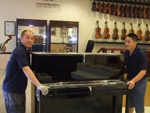 3、搬運(yùn)鋼琴有技巧,如果鋼琴需要搬運(yùn)上樓,需派四至五人搬運(yùn),兩人在下,三人在上,用寬布帶挎在肩上兜住鋼琴的車腳。同時(shí)用手抓住琴背的把手和鍵盤底下(不能拉鋼琴的腿),抬起鋼琴一鼓作氣搬上一層樓再休息。特別要注意的是,鍵盤的一側(cè)不能碰扶手,車腳不能碰樓梯。到一層樓面拐彎時(shí)要當(dāng)心碰撞、調(diào)整好方向然后再抬起往上搬。進(jìn)房門時(shí),也要當(dāng)心蹭著門框,保證最后安全地把鋼琴放到安排好的位置上。若需把鋼琴搬運(yùn)上廂式貨車,由于立式鋼琴的重心靠近后背,琴后背的人數(shù)要比琴前的人多,往車上抬時(shí),前面三個(gè)人,后面兩個(gè)人,后面的人抬起頂住,前面的人抬鋼琴的底部,抬起放到車上,然后上去一個(gè)人往車箱上拉,后面的人往車箱內(nèi)推,這樣就能把琴搬上車了。